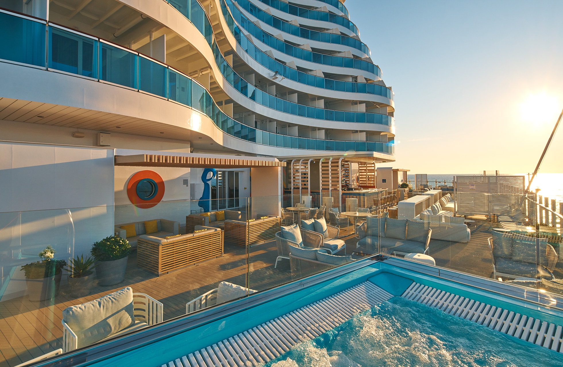 Jag beger mig upp på däck 17 och 18 som ligger högst upp på Costa Smeralda. Här finns de olika poolområdena men det är lite för hög och hetsig musik för att det ska falla mig i smaken. Jag hittar till slut en avskild plats och sjunker ner i en av de inbjudande solstolarna och har ambitionen att påbörja en ny bok, men somnar nästan direkt. Det är tur att jag smörjt in mig ordentligt, för när jag vaknar upp en timme senare skiner solen fortfarande väldigt starkt.